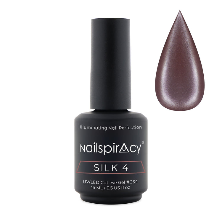 NAILSPIRACY Cat Eye Gel - SILK Series, designed for professional nail artists and passionate DIY enthusiasts, delivers exquisite, luxurious magnetic nail art. Infused with metallic particles, it creates a radiant, silky reflective effect using a magnet, ensuring durable, elegant designs that last up to 3 weeks.